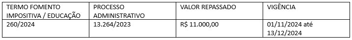 Orion 19 de setembro de 2025 19 de setembro de 20252024, Transparência, Valores Repassado Projeto Ano 2024